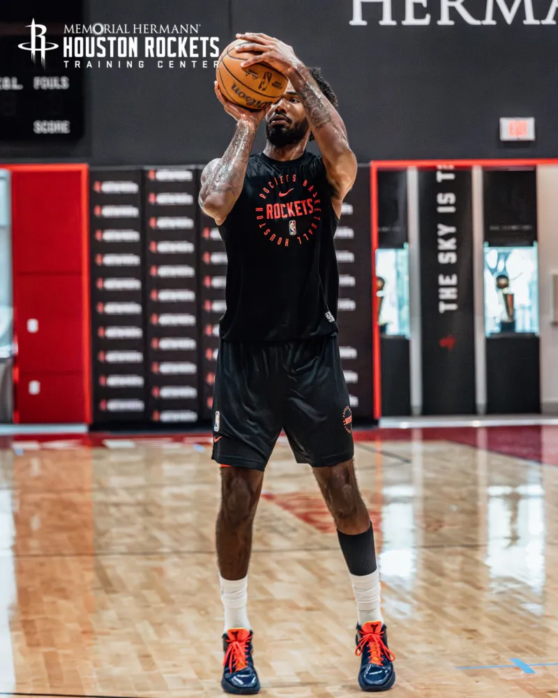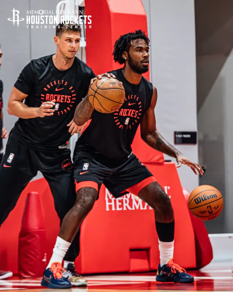 今日,火箭社媒晒出塔里-伊森现身火箭训练馆的训练组图,并配文: